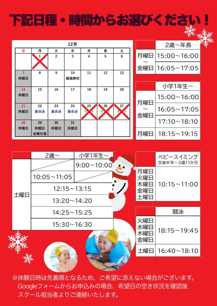 会費1か月無料は平日入会のみ!この機会にぜひスイミングをはじめませんか!