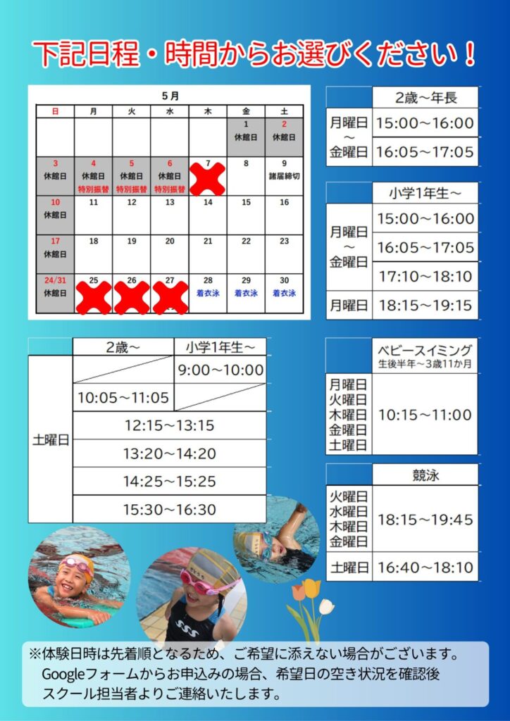 体験日は、下記画像の✖がついている日以外からお選びください!