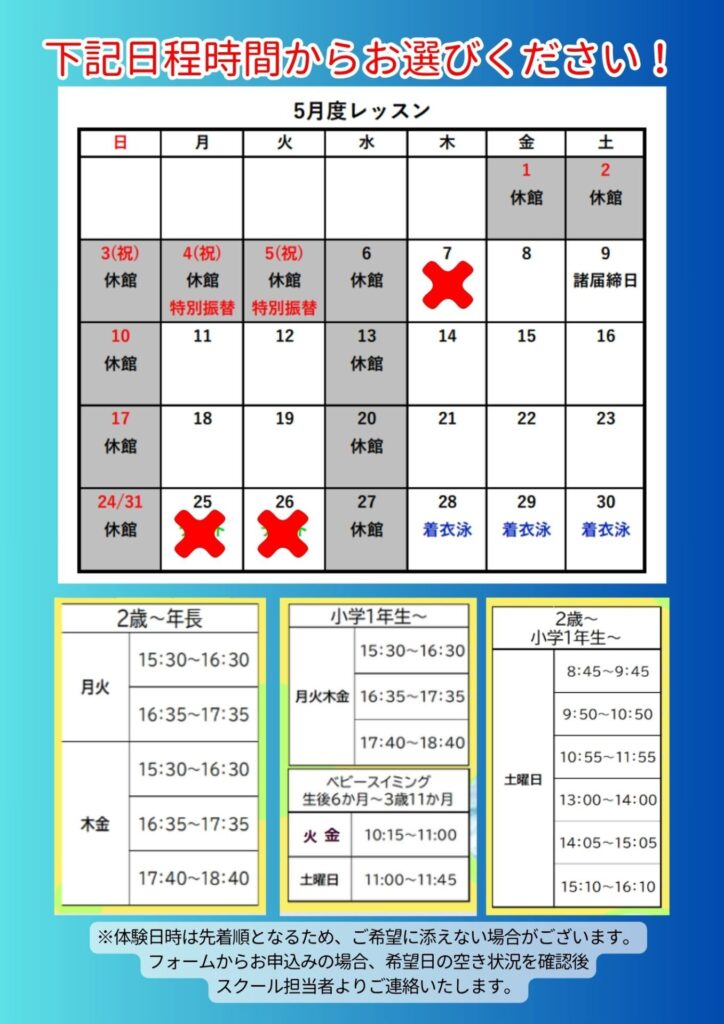 体験日は、下記画像の✖がついている日以外からお選びください!